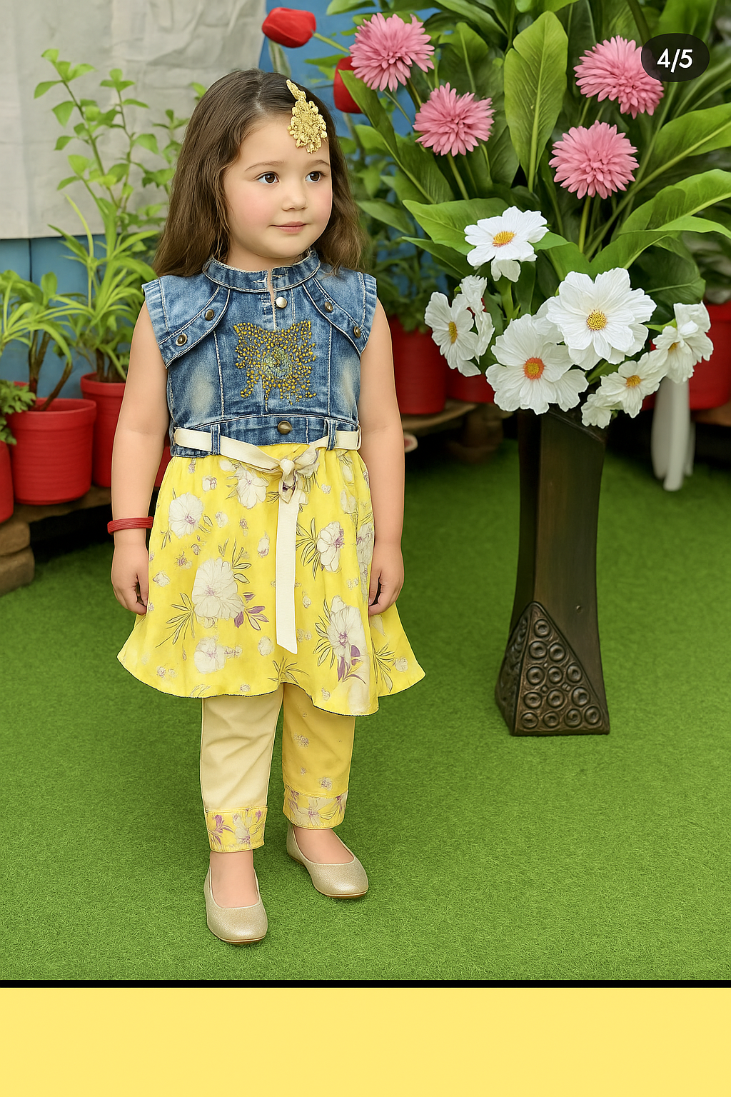 ডেনিম-ইয়েলো কিডস ড্রেস
