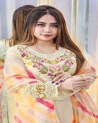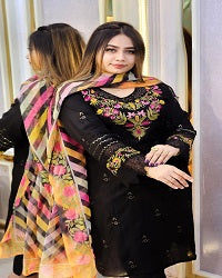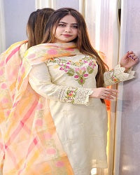 এসি কটন ওড়নায় কম্পিউটারের কাজ করা। ওড়নার চারপাশে কম্পিউটার কাজ করা।